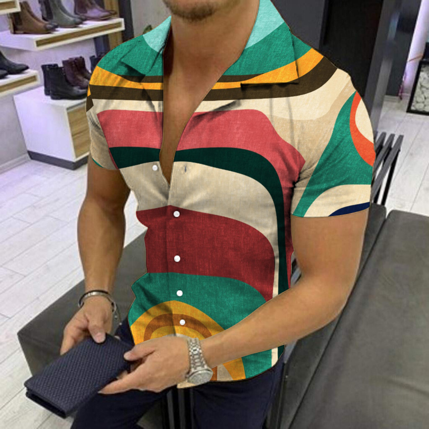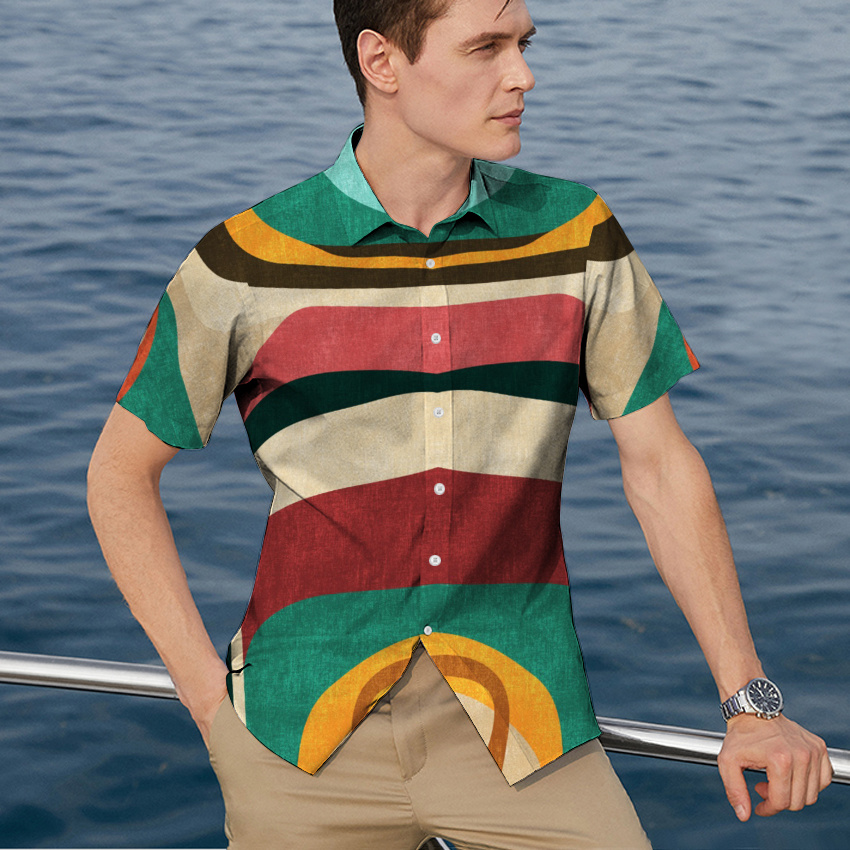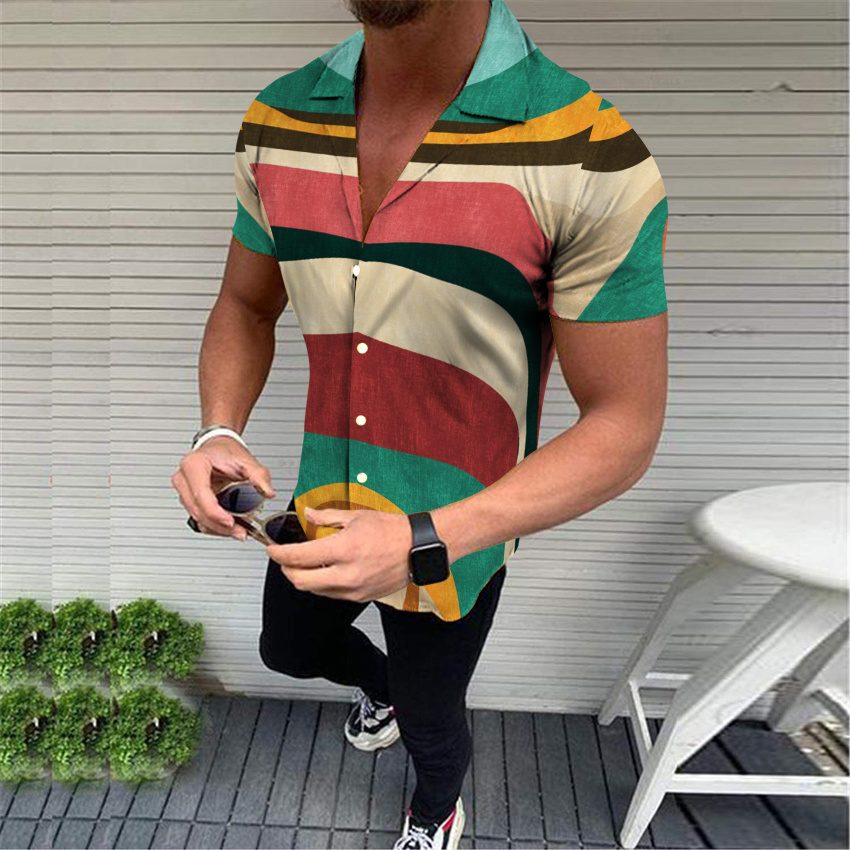 Summer Hawaiian 3D Digital Printing Striped Business Classic Style Men’s Shirts