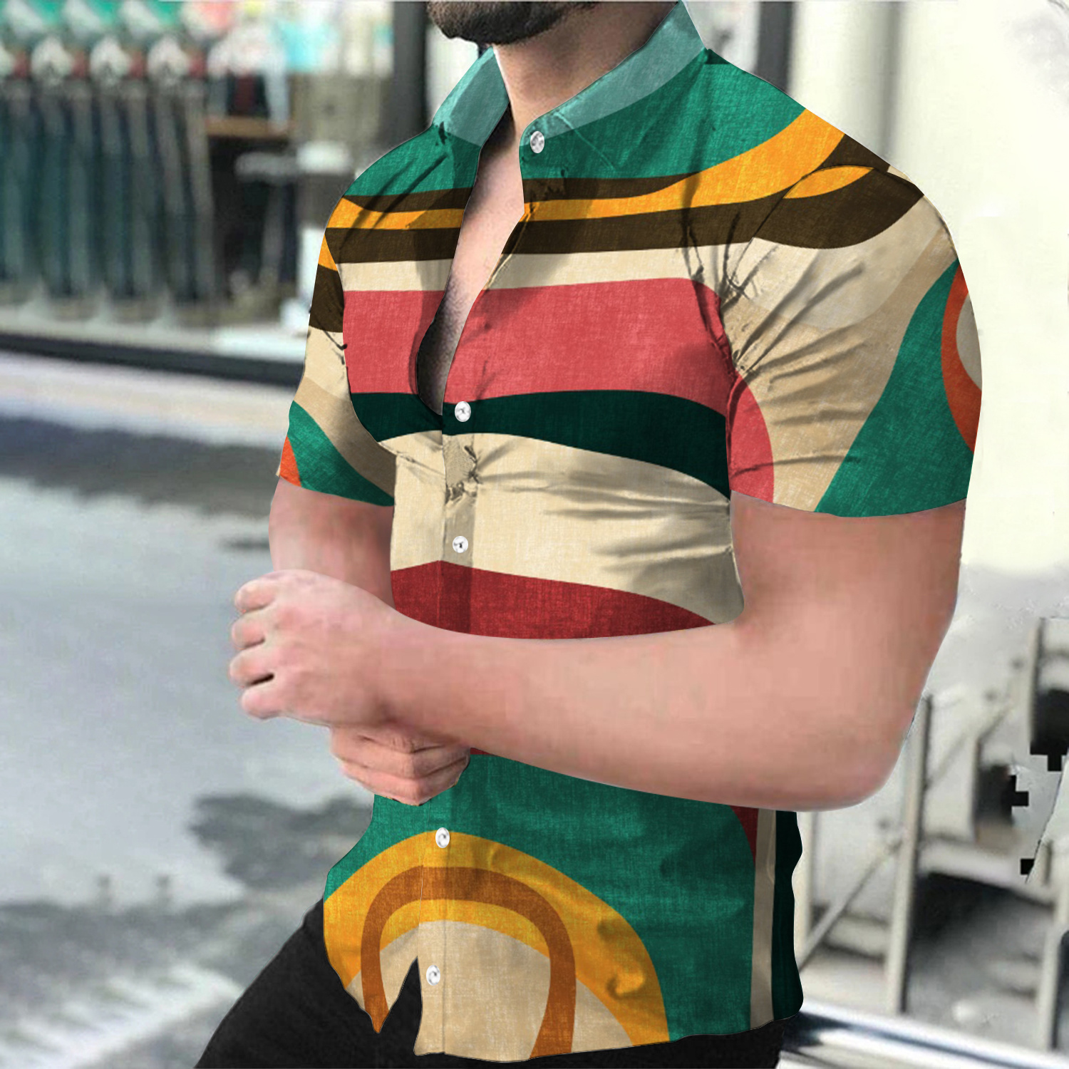 1.*feature*: **Soft and Skin-Friendly*: Made of high-quality soft materials, it is lightweight and skin-friendly. Has a smooth touch and glossy finish. **Printed Men’s T-Shirts Safe: Short sleeves, printed flowers, scoop neck, buttons unique design make it a fashionable casual shirt for men. .