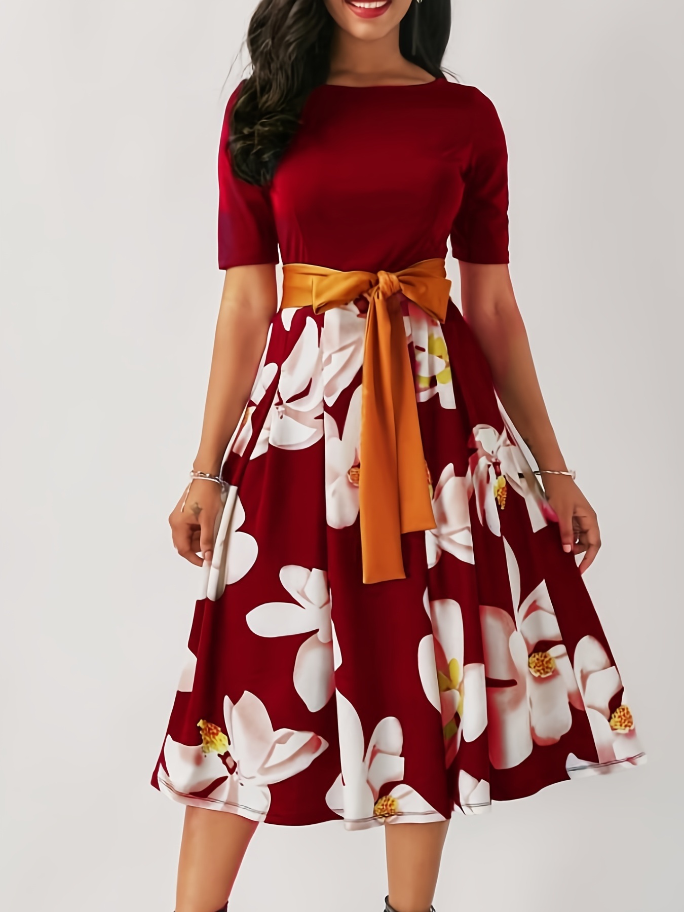 Women’s Dresses Party Midi Dress Elegant Long Sleeve V Neck Bodycon Ruched Dresses