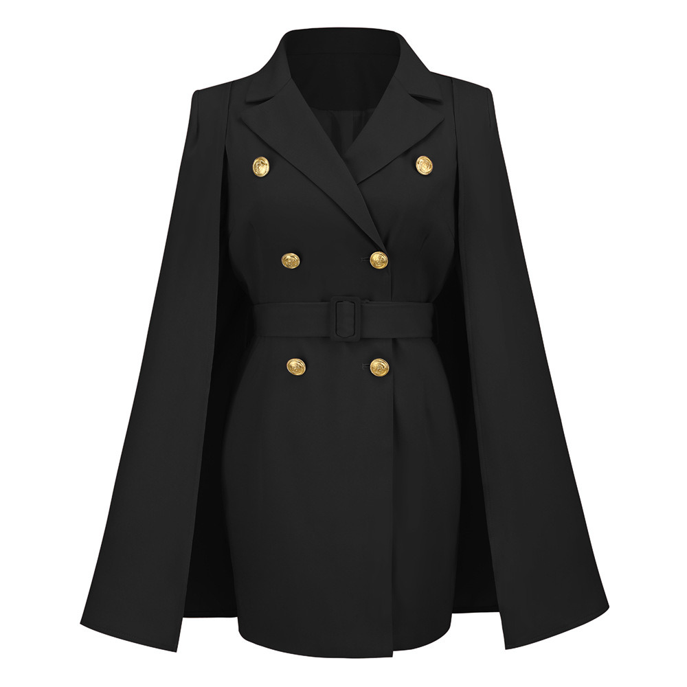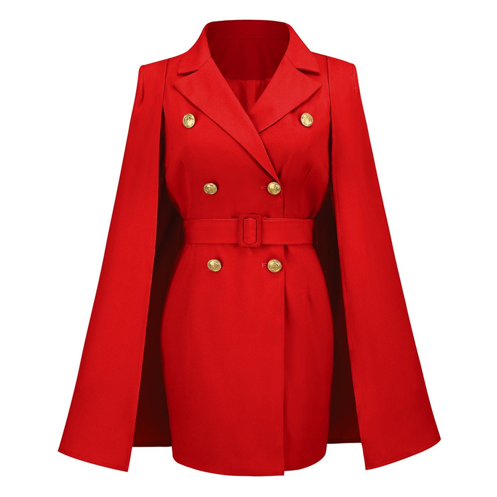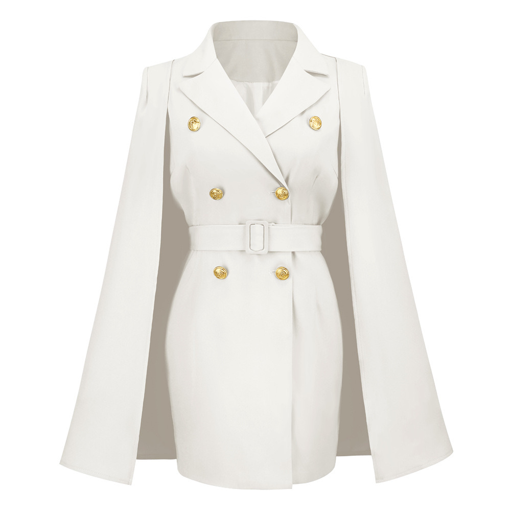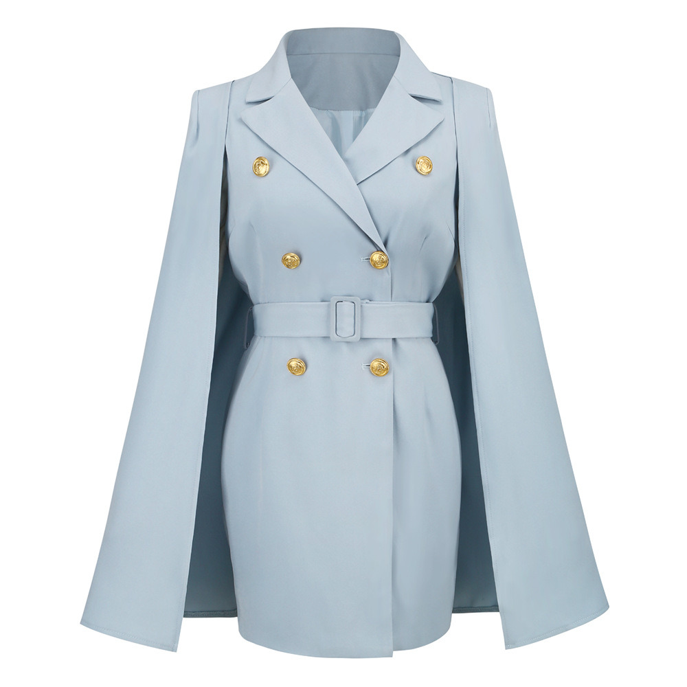 Short Suit Dress Party Skirt Women Fashion 2022 Elegant Slim Cape Cloak Top Double Breasted Lapel Belt Banquet Autumn Winter New