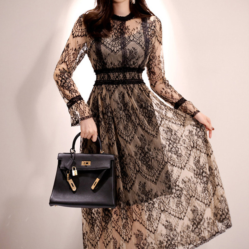 Summer Casual Polka Dot Dress Lace-up Pleated Floral Beach Skirt Vacation High Quality Lightweight Breathable Green Black Yellow